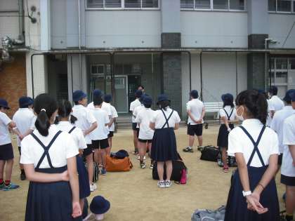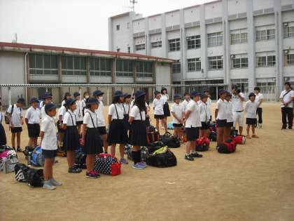 少し雨模様ですが、元気に出発しました。3名の子ども達が欠席は残念ですが、出発式では、今から始まる一泊学習をとても楽しみにすると同時に、やる気にもあふれていました。2日間が有意義なものになりますように。朝からお見送りに来てくださった保護者の皆様、ありがとうございました。
