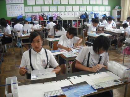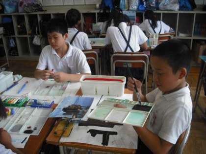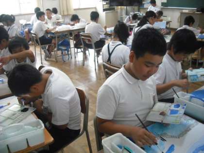 先週行った淡輪の海洋センターの風景を絵画に表現します。