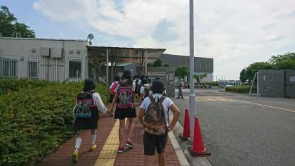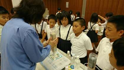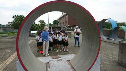 室内で泥水をろ過する実験をした後、浄水場の施設見学です。