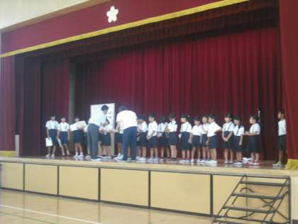 児童朝会では、校長先生から、教育実習生の紹介がありました。