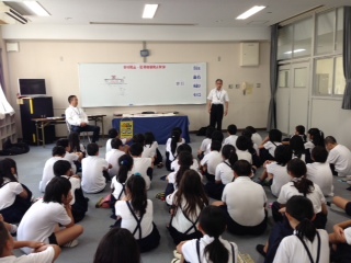 金曜日に警察のOBさんを迎えて、非行防止教室が開かれました。非行とは何かを最初に話してくださいました。メインは万引きの劇の場面です。万引きに誘われた子供が最初は断るのですが、見張り役やったらいいよと協力してしまいます。気軽な気持ちからなのでしょう。それぐらいならという心があったかもしれません。けれども、それは万引きをしたことと同じですと話されました。全校道徳でもやったのですが、「断る勇気」が大切です。