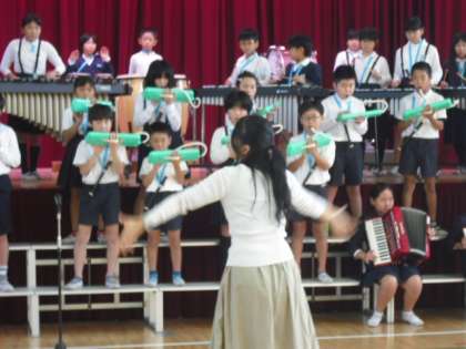 3年生はクラシックの合奏と初めてのリコーダー奏。4年生は迫力満点の合奏に挑戦します。どちらの学年もしっかり指揮を見て合わせます。ようやく練習の成果が現れ、ばらばらだった音が重なり始めました。