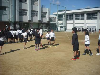 1〜3年は『くぐり抜け』、4〜6年生は『かぶり縄跳び』です。