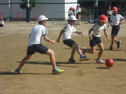 鬼ごっこでサッカー時の身体の使い方を知り、いよいよゲームです。