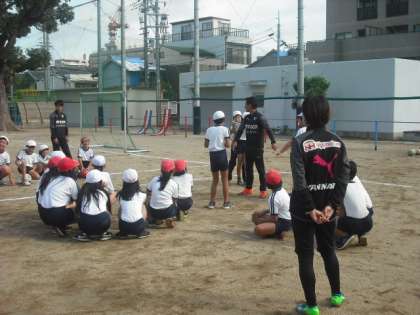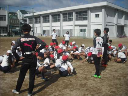 6年生が運動場でセレッソ大阪の特別授業を受けました。