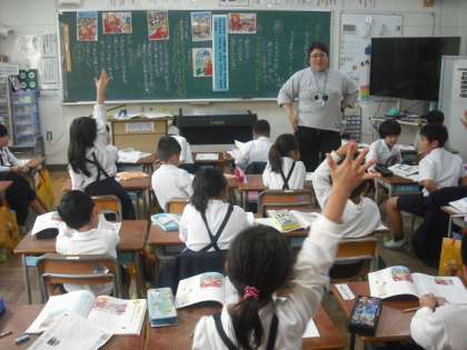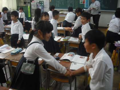 みんなで元気よくあいさつの歌を歌って、握手し合いました。