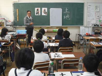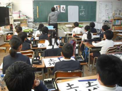 字形を注意し、筆遣いを考えて、心を静めて学習します。