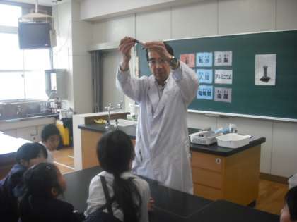 大阪市立科学館からゲストティーチャーをお招きして、理科実験の特別授業がありました。テーマは「電気」。