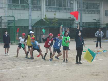 プログラムは、「クイズ大会」「ドッジボール」「運命の旗(徒競走)」「選抜リレー」です。