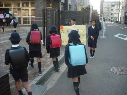 寒くなって手をポケットに入れて登校する児童も目立ちます。