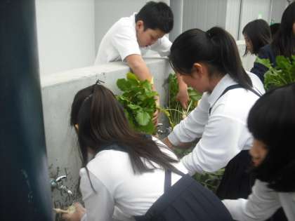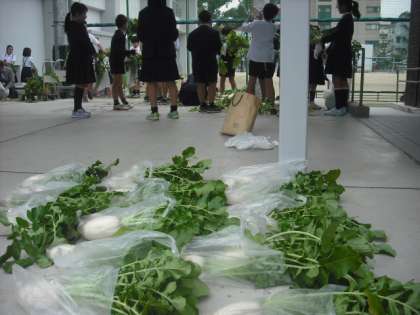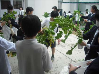 泥を洗う係、タオルで拭く係、袋に詰める係、運ぶ係、袋を数えて籠に詰める係。