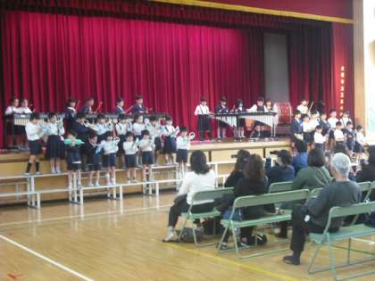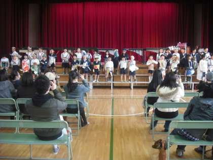 国語科『スイミー』の暗唱をした後、合奏「きらきら星」を演奏しました。