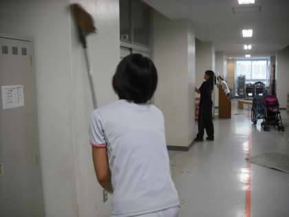 校内清掃に保護者の方が来てくださいました。教職員といっしょになって学校を美しくし、2学期を迎える準備ができました。学校の子どもたちのために時間をつかっていただき本当にありがとうございました。