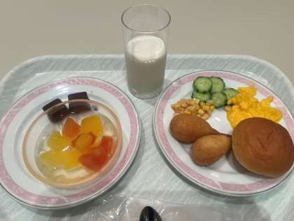 予定の時刻通り朝の会を終え、朝食をとりました。