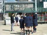 20分休憩に学級ごとにドッチビーをしています。担任の先生も入って、時間内に何回...