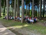 予定通り、6時30分から朝会です。 いいお天気です。 大自然の中、ラジオ体操です...