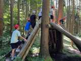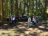 アスレチック遊びを終えて、9時半からは年輪ペンダントづくりの説明を聞いています。...