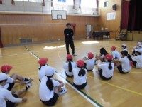 6年生になって初めての朝会です。しっかりと話を聞いています。