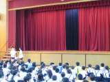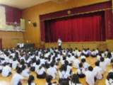 集会の後、生活指導担当の先生からの話がありました。最近、子どもへの声かけ事案が発生しているということで、知らない人には絶対についていかないように、という話でした。ご家庭でも、お話しいただけたらと思います。
