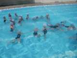本日の2時限目、2年生の水泳学習です。今日は、先生が鳴らす笛の回数と同じ人数で集まり、手をつないで水に浮いたり、友達に手を引っ張ってもらってばた足をしたりしました。