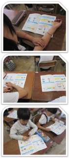 画像は、冊子を見ながら説明を聞いている4年生の様子です。
