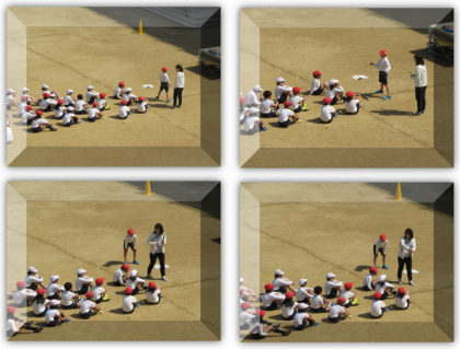 4月18日(木) 5年生の体育の学習です。リレーのバトンの受け渡しの仕方について、学習しています。