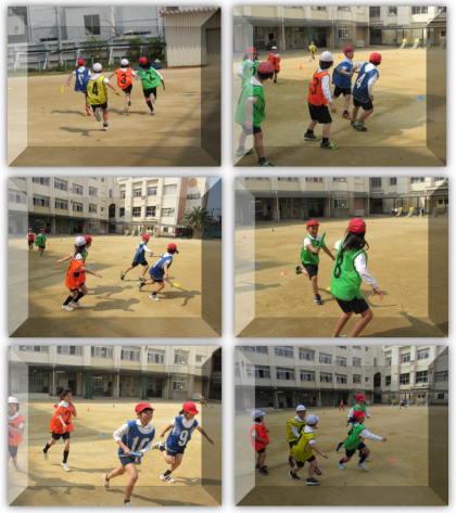 4月19日(金) 5年生の体育の学習です。リレーに取り組みました。