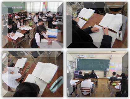 6年生の国語の学習です。詩「生きる」を読んで、印象に残った部分や自分はどのような感想を持ったのかをノートに書いています。