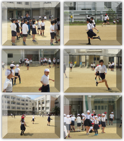 4月22日(月) 休み時間になりました。子どもたちが運動場に出て、元気に遊んでいます。