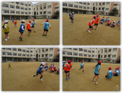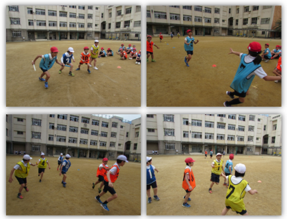 5年生の体育の学習です。リレーの練習に取り組みました。