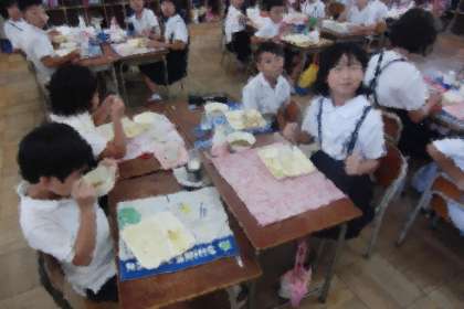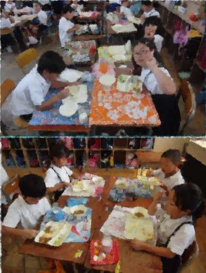 今日の給食は、昨年度の東成区神路小学校6年生の皆さんが考えた献立です。千本小学校の2年生に聞いてみると、90%以上の子どもが「好き」と言いました。