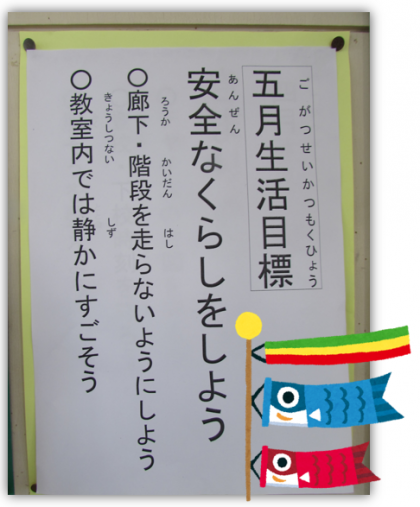 5月の生活目標です。5月の目標は、「安全なくらしをしよう」です。具体目標は、