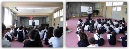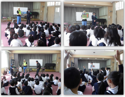 本日、西成区役所・西成警察署の方にお越しいただき、1年生の防犯教室・交通安全学習を行いました。