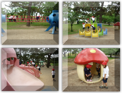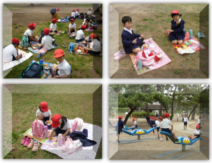 公園では、たくさんある遊具で、たっぷりと遊びました。芝生の上で、友達と一緒に食べたお弁当は、とってもおいしかったです。