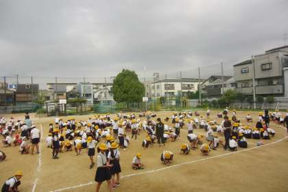 本日の児童集会は、全校児童で運動場の石拾いをしました。けがなく、安全に競技・演技ができるよう、みんなで協力して取り組みました。
