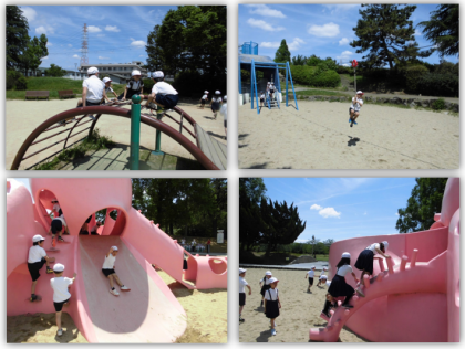 本日、2年生は春の遠足で、大泉緑地に行ってきました。大泉緑地では、たくさんある遊具で遊んだり、芝生の上を走り回ったりしました。友達と一緒に食べたお弁当は、とてもおいしかったです。