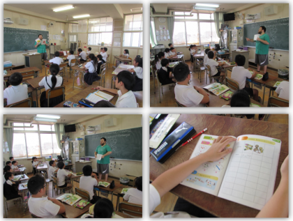 5年生の外国語学習の様子です。C-NETのAlex先生と、『What color do you like?』『What design do you like?』の言い方を学習しました。