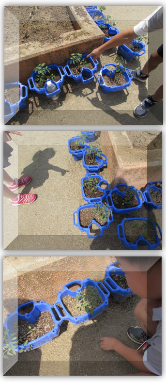 2年生の生活科の学習です。一人一鉢、ミニトマトを育てています。