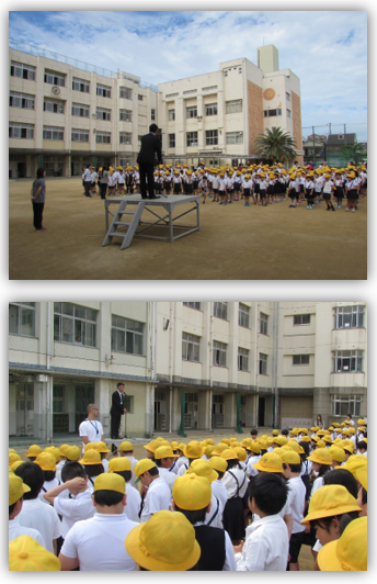 初めに、学校長の話です。先日の「いじめを考える日」について、各学級で取り組みをしたこと、千本小学校でいじめをなくし、新しいいじめが生まれないようにしましょとう、という話、先週の遠足で、駅までの歩行、電車内でのマナーがとてもよかった話をしました。