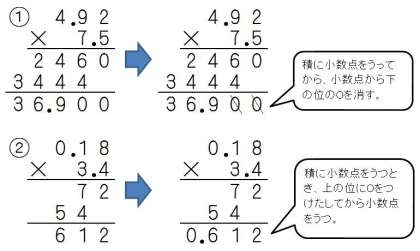 5年生の算数の学習です。かける数が小数の場合の筆算の仕方を学習しています。