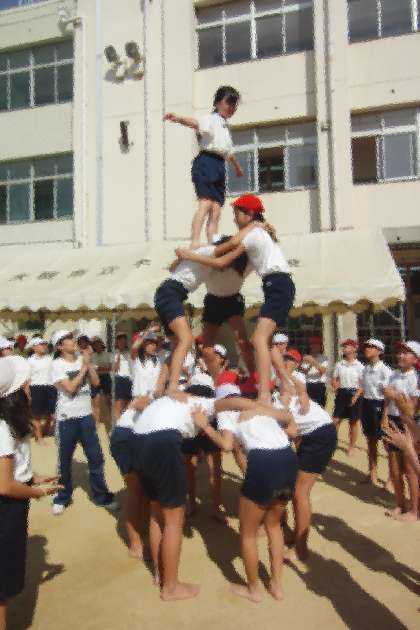 6年生の組み立て体操の練習です。今日は、3段のタワーをたてました。初めは、男子の中から1つ、女子の中から1つ作れたら、と考えていたのですが、「やりたい!」という声が多く、今日は男子2つ、女子3つのタワーにチャレンジしました。子どもたちの、そんなやる気をとてもうれしく思います。