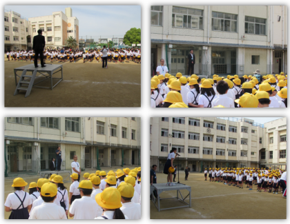 初めに、学校長の話です。「熱中症に気を付けましょう。帽子をかぶり、こまめに水分補給をしましょう」「6月8日、千本子ども祭です。準備が始まりますね。めあてをもって、取り組むようにしましょう」