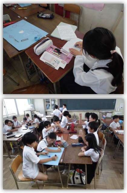 4年生の総合学習の様子です。千本子ども祭に向けて、ポスターや、説明文を作っています。