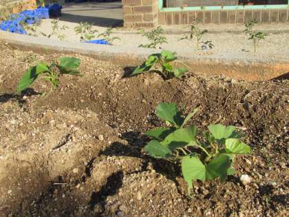 2年生が学習園で育てているサツマイモです。少しずつ葉が増えてきました。