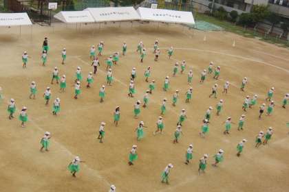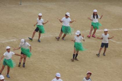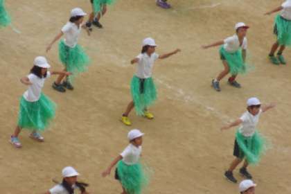 3年生の練習の様子です。3年生のダンスは「Aloha e KomoMai」という曲で踊ります。フラダンスを踊ります。大きく体を動かして、楽しく、可愛らしく踊ります。