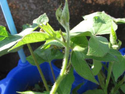 1年生が育てているアサガオです。小さな小さな、赤ちゃんのようなつぼみがついていました。花が咲くのは、いつでしょう。