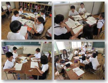 5年生の国語の学習です。論題を選んで自分の立場を決め、説得力のある理由を考えて意見文を書きました。