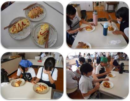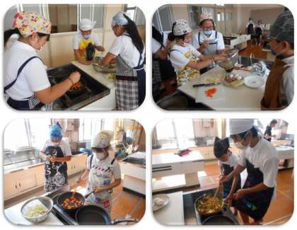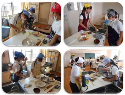 6年生の家庭科の学習です。今日は、焼く・炒める調理に取り組みました。