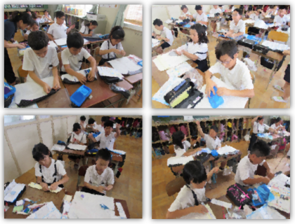 7月3日(水) 5年生の家庭科の学習です。ナップサック作りに取り組んでいます。