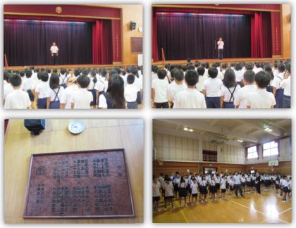 最後に皆で、校歌を歌いました。講堂に、千本小学校の子どもたちの澄んだ、そして元気な声が響きました。